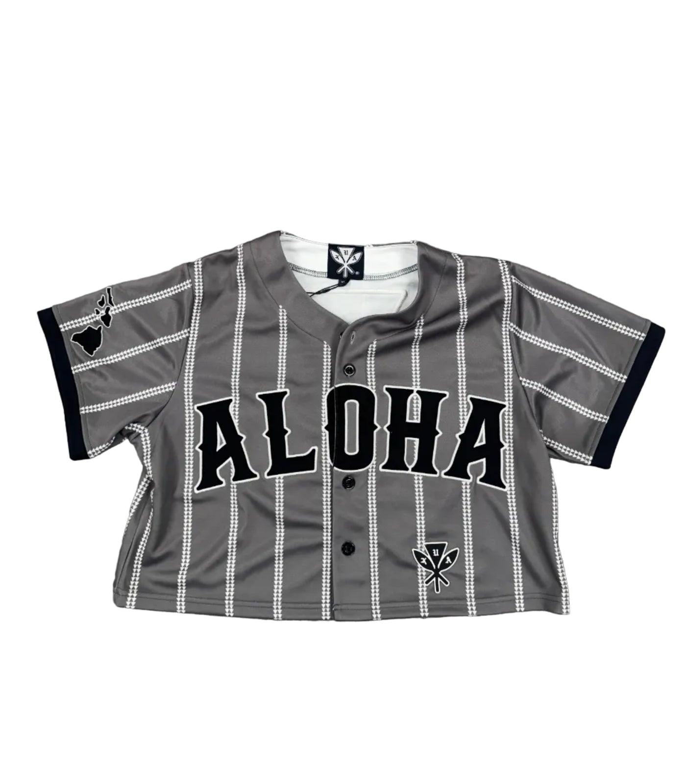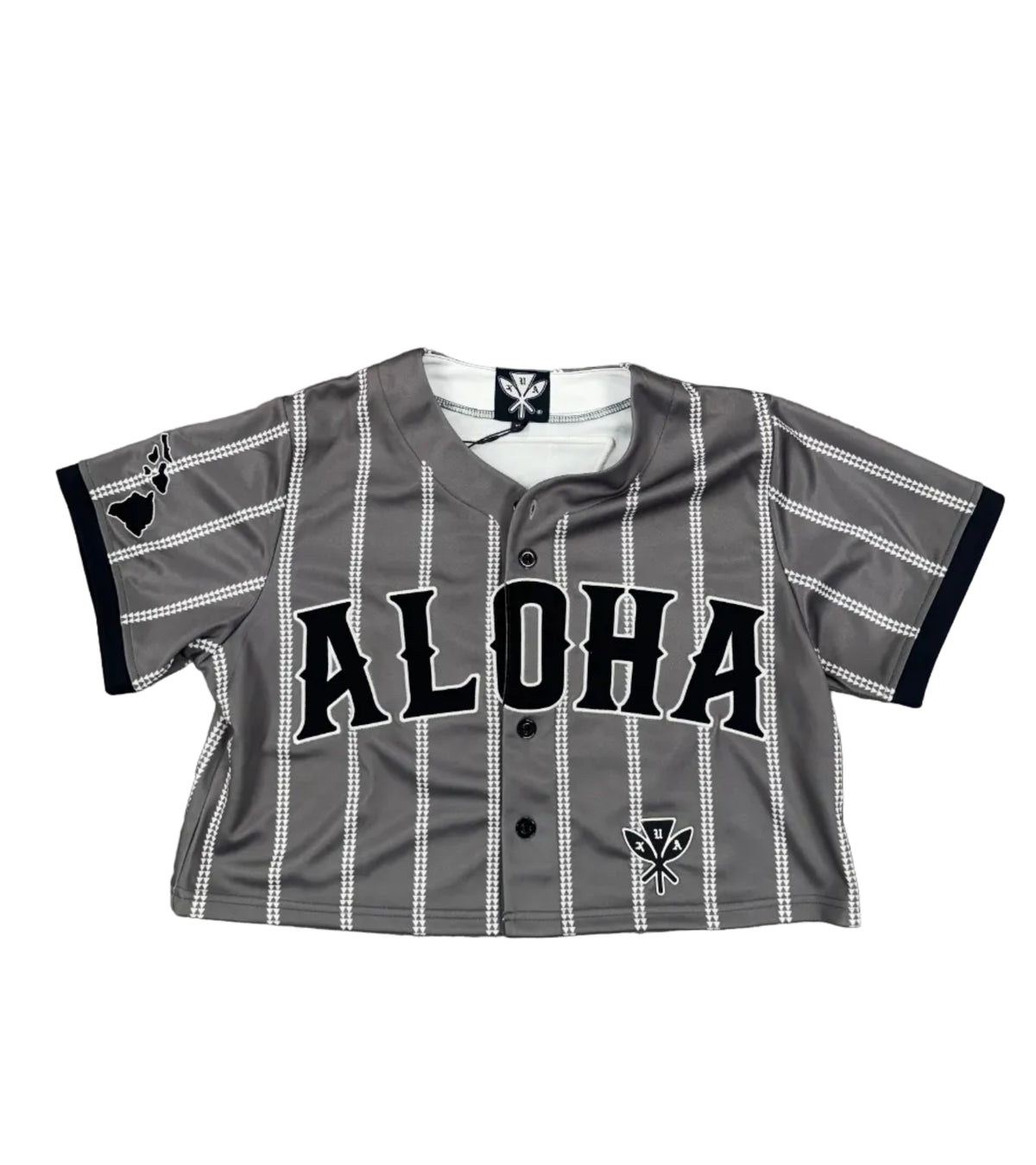 Inform when this item available (Pre-Order) Aloha Pinstripe Baseball Crop Jersey - Grey